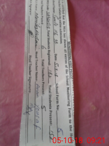 | Attendance Register | Head Teacher | MEA with School | Visit Proof |