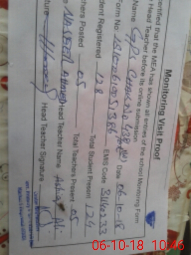 | Certified that this School was Inspected by the Undersigned MEA/DMO Today and the Information Stated Above is as Per Record. | |||||