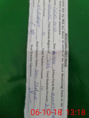 | School Visited by School Health & Nutrition Supervisor (No. of Visits) | 1 | Name1: | MUZAMMAL HUSSAIN | Name2: | |