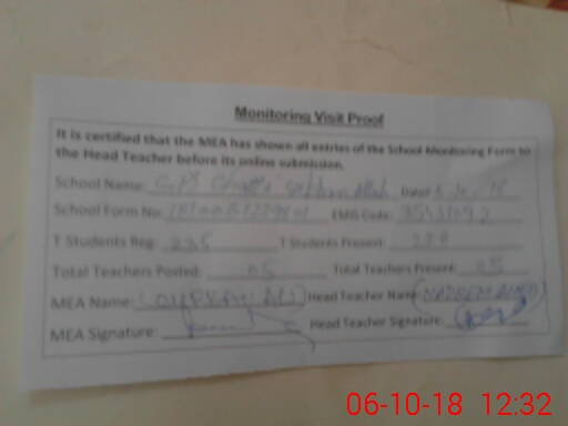 | Attendance Register | Head Teacher | MEA with School | Visit Proof |