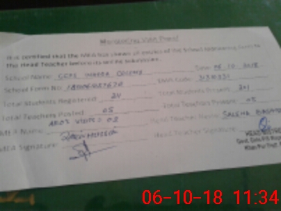 | Certified that this School was Inspected by the Undersigned MEA/DMO Today and the Information Stated Above is as Per Record. | |||||