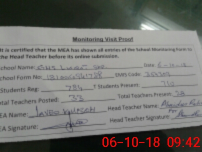 | Certified that this School was Inspected by the Undersigned MEA/DMO Today and the Information Stated Above is as Per Record. | |||||