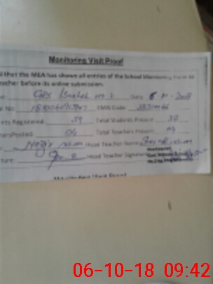 | Certified that this School was Inspected by the Undersigned MEA/DMO Today and the Information Stated Above is as Per Record. | |||||
