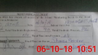 | Monitoring Date: 06-10-2018 | Start Time: 06-10-2018 09:53 AM | End Time: 06-10-2018 10:55 AM | Name of MEA: MU**** AR**** (R**** | |