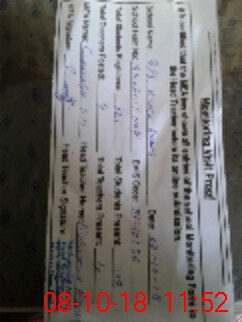 | Monitoring Date: 08-10-2018 | Start Time: 08-10-2018 11:17 AM | End Time: 08-10-2018 11:53 AM | Name of MEA: Ch**** Di**** | |