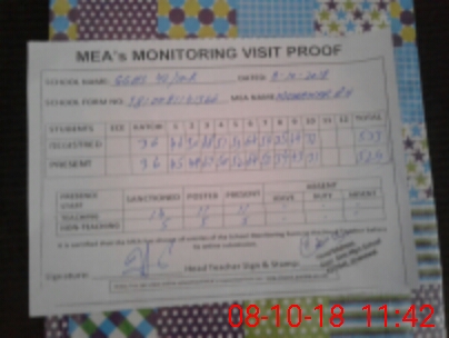 | Attendance Register | Head Teacher | MEA with School | Visit Proof |