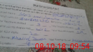 | Monitoring Date: 08-10-2018 | Start Time: 08-10-2018 08:39 AM | End Time: 08-10-2018 09:59 AM | Name of MEA: Kh**** Ta**** | |