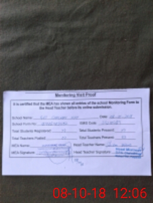 | Attendance Register | Head Teacher | MEA with School | Visit Proof |