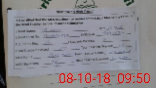 | Monitoring Date: 08-10-2018 | Start Time: 08-10-2018 09:15 AM | End Time: 08-10-2018 09:54 AM | Name of MEA: Ra**** Hu**** Gi**** | |