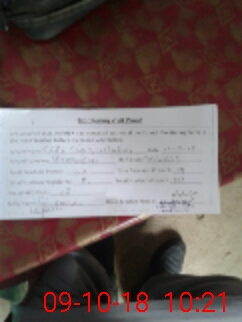| Monitoring Date: 09-10-2018 | Start Time: 09-10-2018 10:03 AM | End Time: 09-10-2018 10:21 AM | Name of MEA: Sa**** Hu**** | |