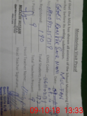 | EMIS Code: 36110231 | Name of School: GGES RAM PUR SAIR MIANI MULTAN | |||