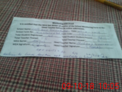 | Attendance Register | Head Teacher | MEA with School | Visit Proof |