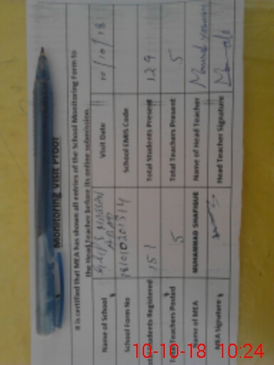 | Certified that this School was Inspected by the Undersigned MEA/DMO Today and the Information Stated Above is as Per Record. | |||||