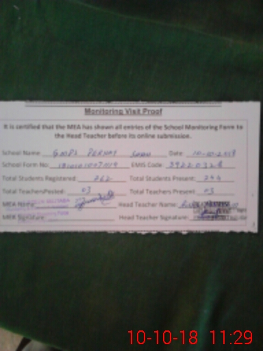 | Certified that this School was Inspected by the Undersigned MEA/DMO Today and the Information Stated Above is as Per Record. | |||||
