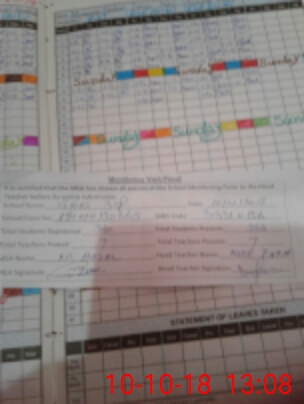 | Attendance Register | Head Teacher | MEA with School | Visit Proof |