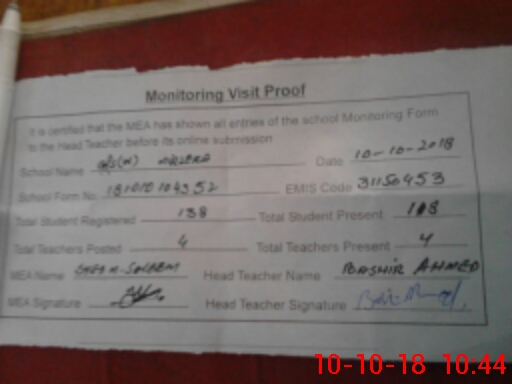 | EMIS Code: 31150453 | Name of School: GPS MIRZEKA | |||