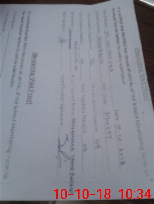 | School Visited by School Health & Nutrition Supervisor (No. of Visits) | 1 | Name1: | Gullu Ram | Name2: | None |