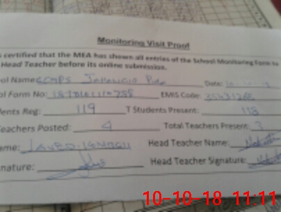 | Attendance Register | Head Teacher | MEA with School | Visit Proof |