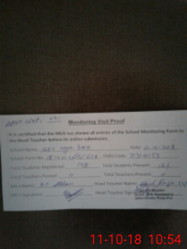| Attendance Register | Head Teacher | MEA with School | Visit Proof |