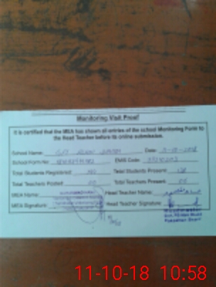 | Attendance Register | Head Teacher | MEA with School | Visit Proof |