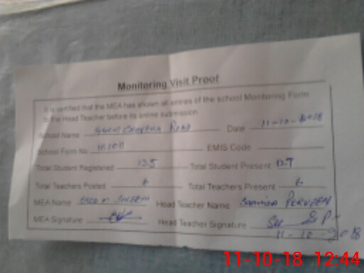 | Attendance Register | Head Teacher | MEA with School | Visit Proof |