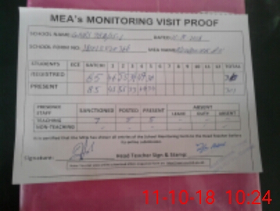 | Attendance Register | Head Teacher | MEA with School | Visit Proof |