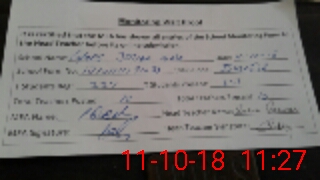 | Monitoring Date: 11-10-2018 | Start Time: 11-10-2018 10:50 AM | End Time: 11-10-2018 11:28 AM | Name of MEA: Mu**** Iq**** (D**** | |