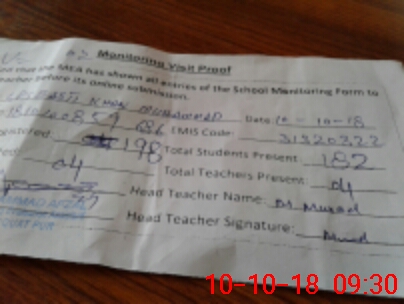 | Attendance Register | Head Teacher | MEA with School | Visit Proof |