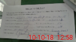 | Monitoring Date: 10-10-2018 | Start Time: 10-10-2018 12:17 PM | End Time: 10-10-2018 01:02 PM | Name of MEA: Mu**** Yo**** | |
