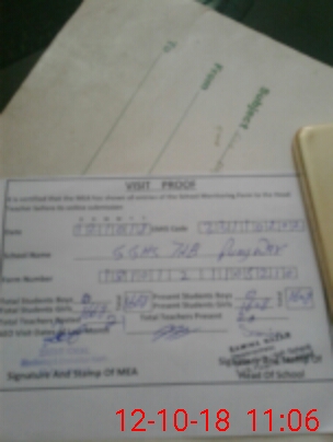 | Attendance Register | Head Teacher | MEA with School | Visit Proof |
