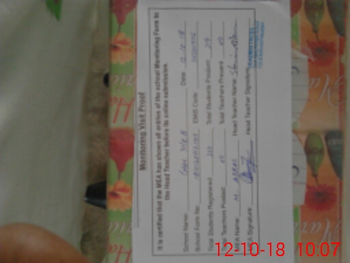| Attendance Register | Head Teacher | MEA with School | Visit Proof |