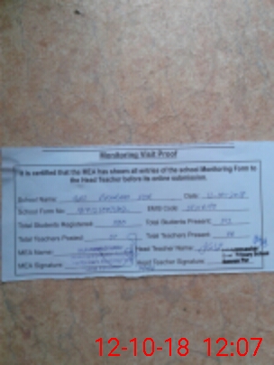 | Attendance Register | Head Teacher | MEA with School | Visit Proof |