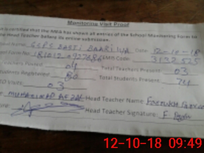 | Name: Am**** Ar**** Designation: (School Headmaster's/Headmistress's) PST Phone/Cell Number: 03**** |