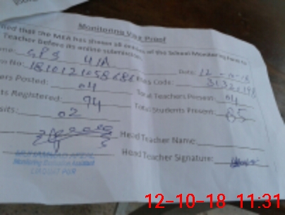 | Attendance Register | Head Teacher | MEA with School | Visit Proof |