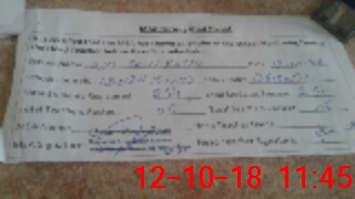 | Monitoring Date: 12-10-2018 | Start Time: 12-10-2018 11:35 AM | End Time: 12-10-2018 11:47 AM | Name of MEA: Qa**** Ka**** Kh**** | |