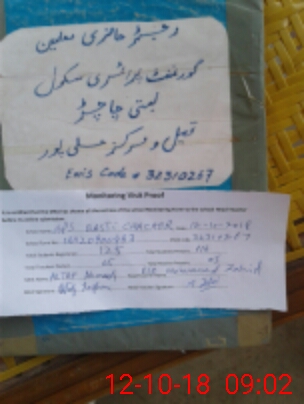 | School Visited by School Health & Nutrition Supervisor (No. of Visits) | 1 | Name1: | Mohummad Yasir | Name2: | |
