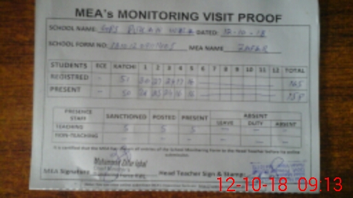 | Attendance Register | Head Teacher | MEA with School | Visit Proof |