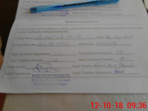 | Attendance Register | Head Teacher | MEA with School | Visit Proof |