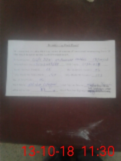| Monitoring Date: 13-10-2018 | Start Time: 13-10-2018 10:40 AM | End Time: 13-10-2018 11:32 AM | Name of MEA: Ab**** Gh**** | |