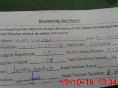 | Certified that this School was Inspected by the Undersigned MEA/DMO Today and the Information Stated Above is as Per Record. | |||||