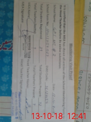 | Certified that this School was Inspected by the Undersigned MEA/DMO Today and the Information Stated Above is as Per Record. | |||||