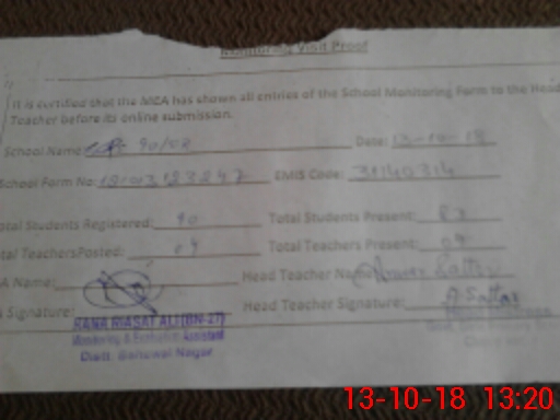 | Certified that this School was Inspected by the Undersigned MEA/DMO Today and the Information Stated Above is as Per Record. | |||||