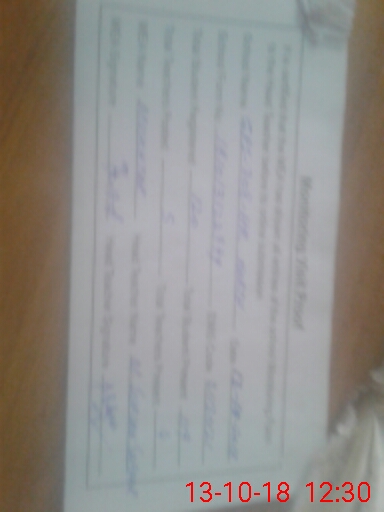 | Monitoring Date: 13-10-2018 | Start Time: 13-10-2018 11:32 AM | End Time: 13-10-2018 12:33 PM | Name of MEA: Mu**** ah**** BN**** 29 | |