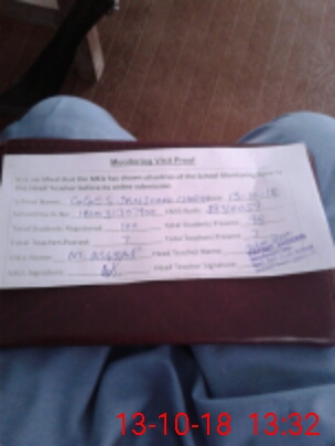 | Attendance Register | Head Teacher | MEA with School | Visit Proof |