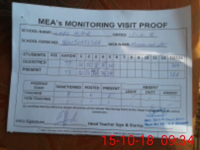 | Attendance Register | Head Teacher | MEA with School | Visit Proof |