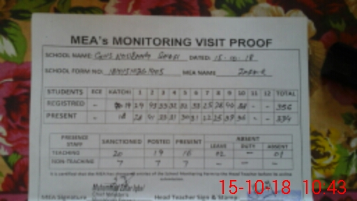 | Certified that this School was Inspected by the Undersigned MEA/DMO Today and the Information Stated Above is as Per Record. | |||||