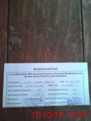 | Attendance Register | Head Teacher | MEA with School | Visit Proof |