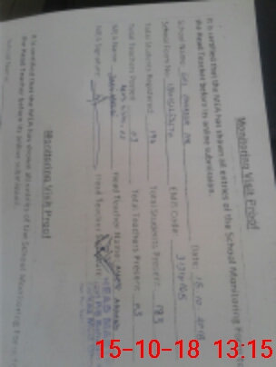 | Monitoring Date: 15-10-2018 | Start Time: 15-10-2018 12:27 PM | End Time: 15-10-2018 01:22 PM | Name of MEA: Za**** Hu**** | |