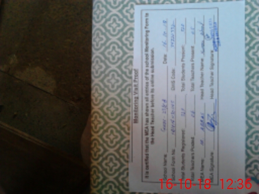| School Visited by School Health & Nutrition Supervisor (No. of Visits) | 1 | Name1: | Rafia Tabassum | Name2: | Nil |