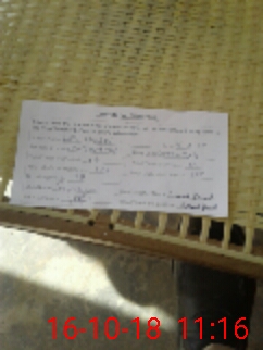 | Monitoring Date: 16-10-2018 | Start Time: 16-10-2018 10:56 AM | End Time: 16-10-2018 11:16 AM | Name of MEA: Sa**** Hu**** | |